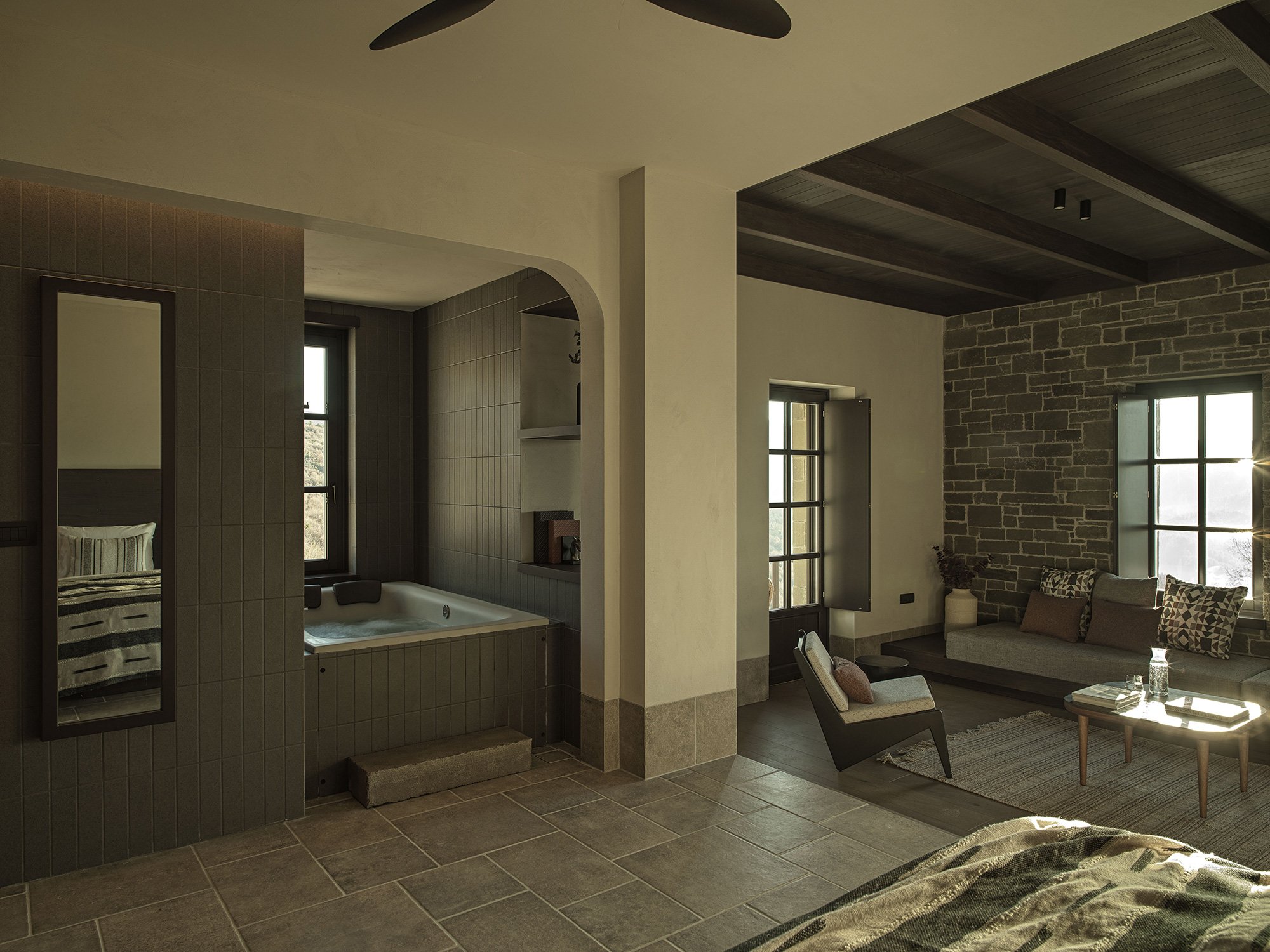 ΦΥΣΙΚΑ ΥΛΙΚΑ, ΛΕΠΤΟΜΕΡΕΙΣ ΟΛΟΚΛΗΡΩΣΕΙΣ ΚΑΙ ΔΙΑΚΟΣΜΗΤΙΚΟΣ ΦΩΤΙΣΜΟΣ ΔΗΜΙΟΥΡΓΟΥΝ ΜΙΑ ΑΡΜΟΝΙΚΗ ΚΑΙ ΚΟΜΨΗ ΑΤΜΟΣΦΑΙΡΑ. ΙΔΙΩΤΙΚΟ ΕΣΩΤΕΡΙΚΟ JACUZZI ΠΡΟΣΦΕΡΕΙ ΜΙΑ ΒΑΘΙΑ ΧΑΛΑΡΩΤΙΚΗ ΕΜΠΕΙΡΙΑ ΕΥΕΞΙΑΣ, ΣΥΜΠΛΗΡΩΜΕΝΟ ΑΠΟ ΤΖΑΚΙ ΠΟΥ ΕΝΙΣΧΥΕΙ ΤΗ ΦΙΛΟΞΕΝΗ ΑΤΜΟΣΦΑΙΡΑ. ΕΥΡΥΧΩΡΑ ΠΑΡΑΘΥΡΑ ΚΑΙ ΙΔΙΩΤΙΚΟ ΜΠΑΛΚΟΝΙ ΑΠΟΚΑΛΥΠΤΟΥΝ ΕΚΠΛΗΚΤΙΚΗ ΠΑΝΟΡΑΜΙΚΗ ΘΕΑ ΣΤΑ ΓΥΡΩ ΒΟΥΝΑ, ΤΗ ΦΥΣΗ ΚΑΙ ΤΟ ΧΩΡΙΟ, ΚΑΘΙΣΤΩΝΤΑΣ ΑΥΤΗ ΤΗ ΣΟΥΙΤΑ ΤΗΝ ΤΕΛΕΙΑ ΑΠΟΔΡΑΣΗ ΣΤΟ ΒΟΥΝΟ ΓΙΑ ΜΙΑ ΑΞΕΧΑΣΤΗ ΔΙΑΜΟΝΗ.